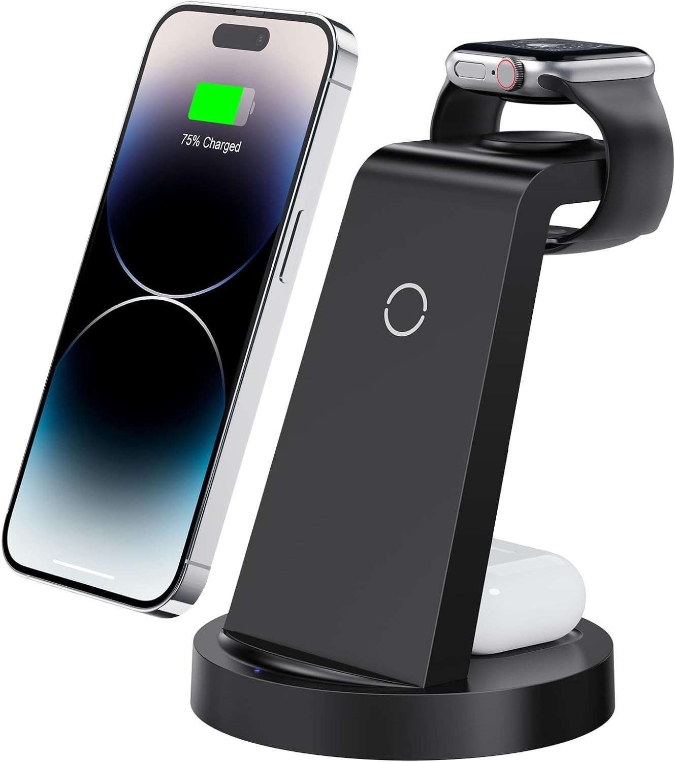 3-in-1 design for charging iPhone, AirPods, and Apple Watch.Fast wireless charging up to 15W for iPhones.
